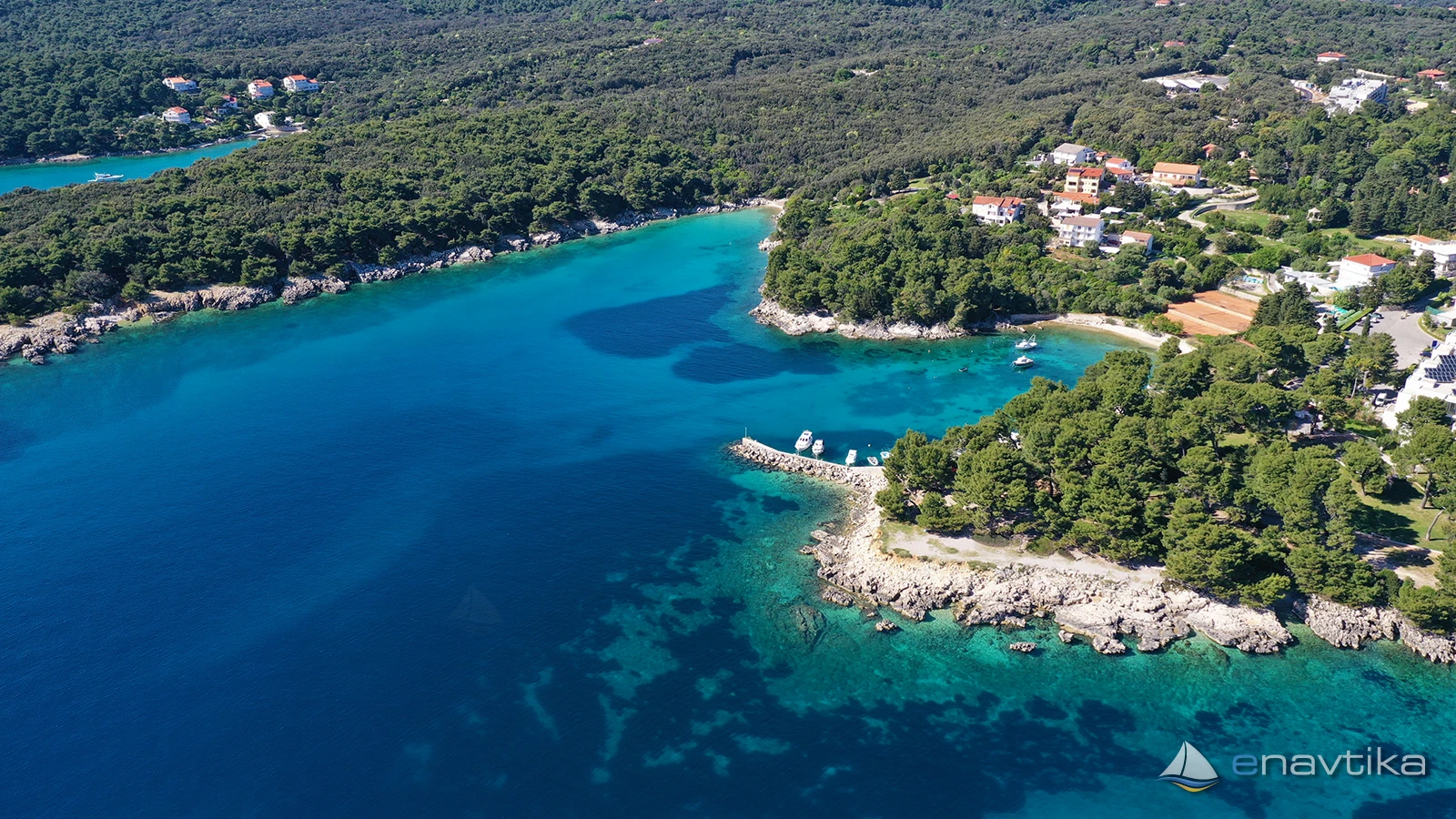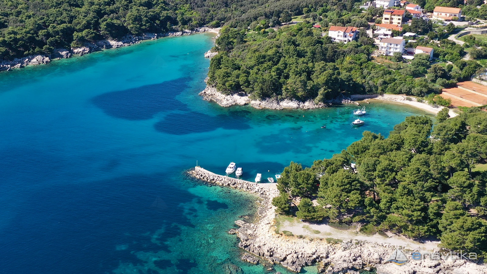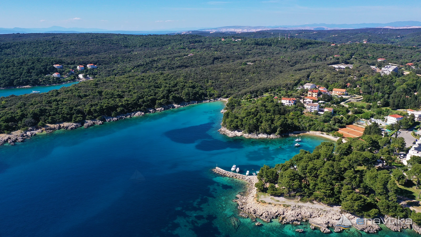 Veli Žal Harbour is located 2 nm west of the Rab town harbour. The small harbour has a pier to which two vessels can be moored sideways, and several more can also be moored to moorings that are moored to the shore. Most of the time, the moorings are occupied by local vessels or by vessels of tourists who live in nearby apartments. Anchoring is possible in front of the harbour or in Jelenovica Bay, northwest of the pier, which is protected from all winds except southerly ones.