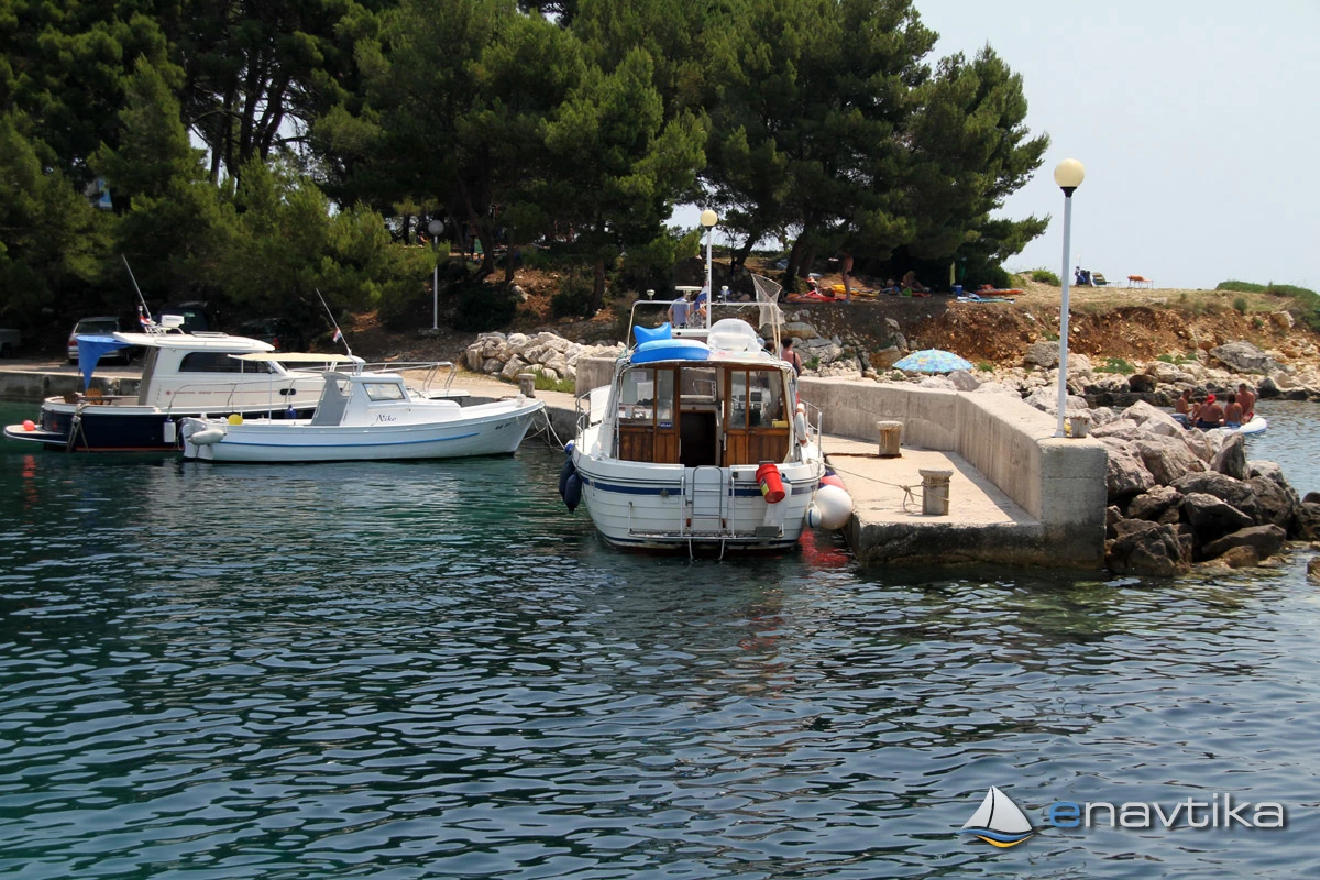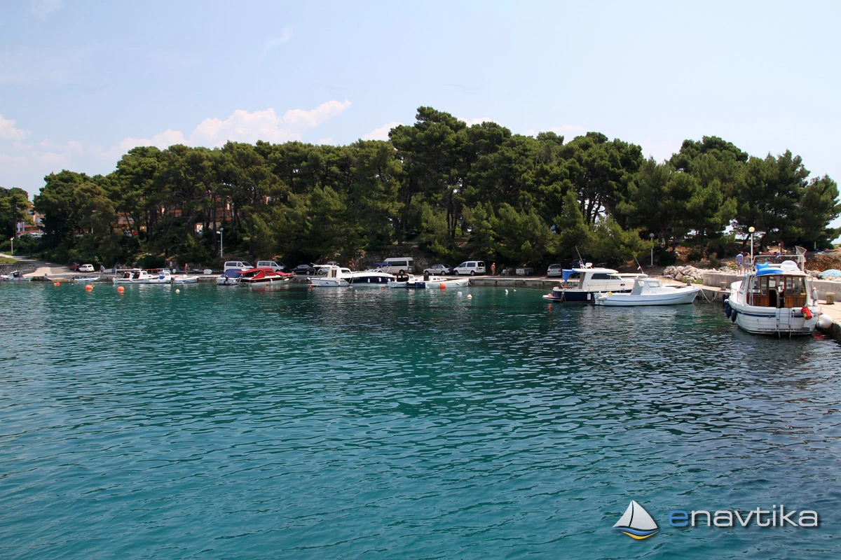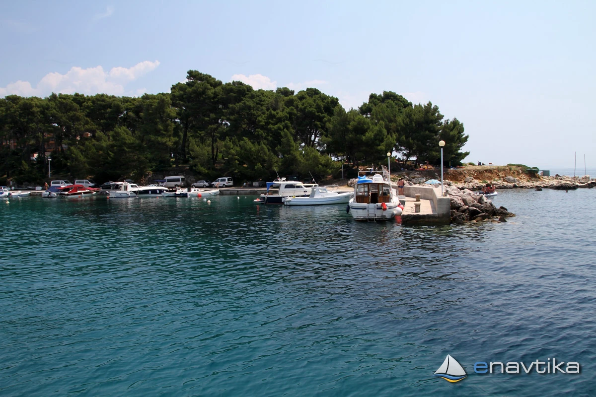 The nearest inn is in the harbour of Gožinka, which is 0.2 nmi to the west, or on Cape Frkanj, which is 0.3 nmi to the east. The nearest shop and petrol station are in the harbour of Rab, which is 2 nmi away.