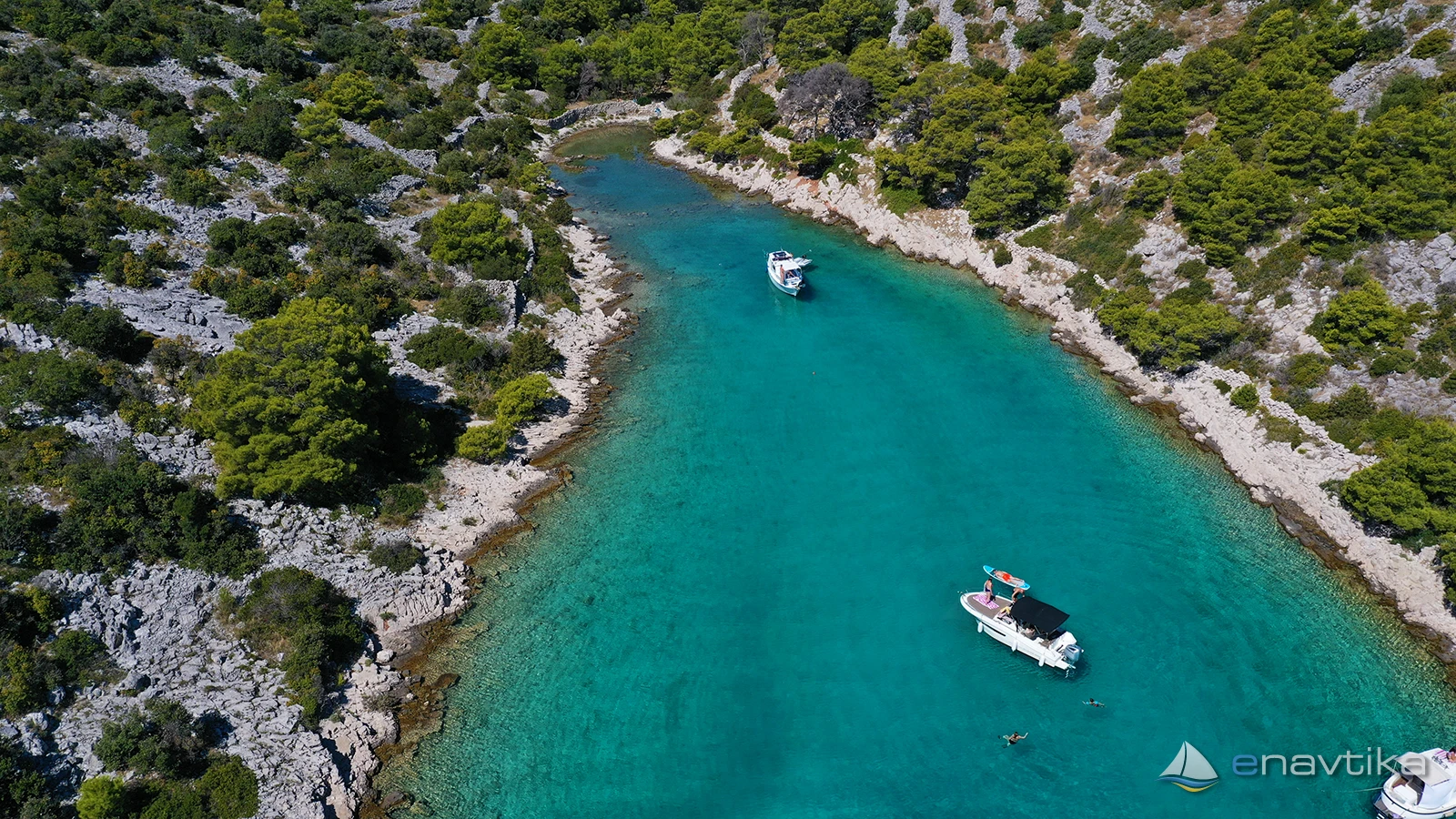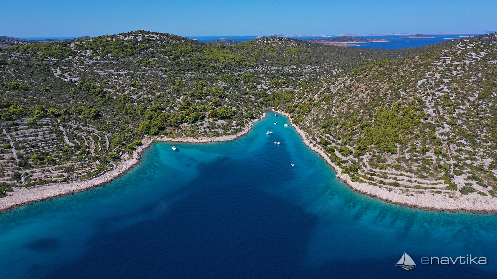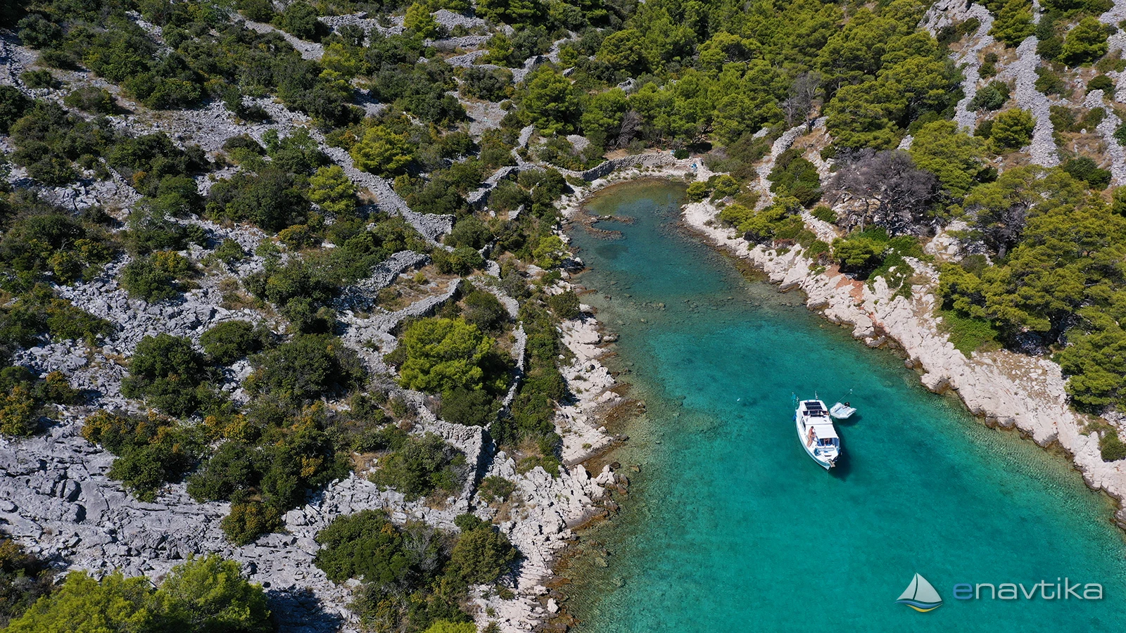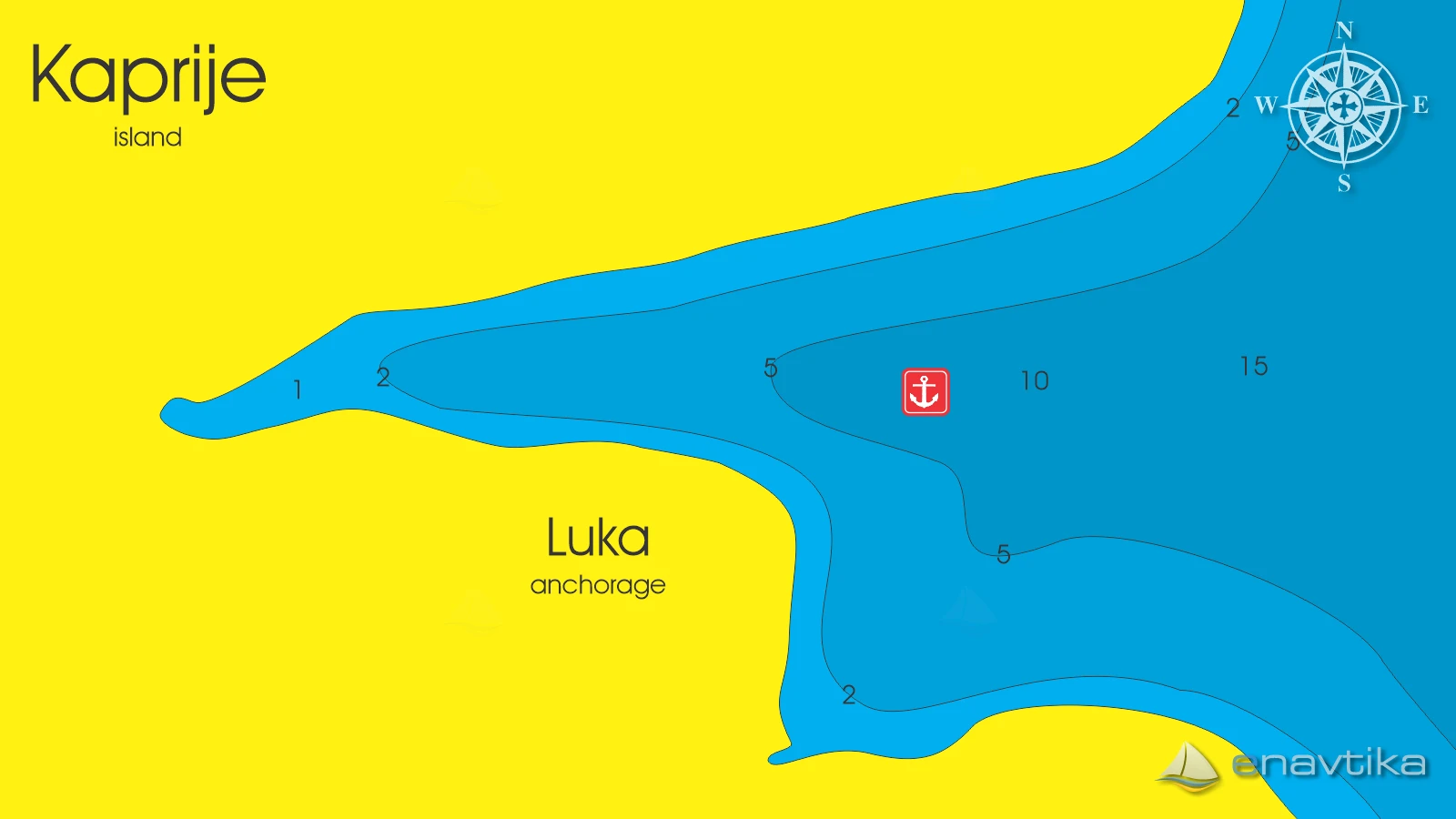Anchorage Luka is on the eastern side of the island of Kaprije. It has two arms that are suitable for anchoring. The bay is well protected from the north and west winds. The bora and strong jugo in the bay cause waves. We can anchor at depths between 2 and 15 m. The bottom is sandy, rocky towards the shore. In the sandy part, the anchor holds well. There is no offer in the bay. The nearest tavern is in the bay of Gačice and Medoš. The nearest shop is in the port of Kaprije, and the nearest gas station is in the town of Vodice, which is 6 nmi away. No concession has been granted for the bay. Anchoring on your own anchor is free of charge.