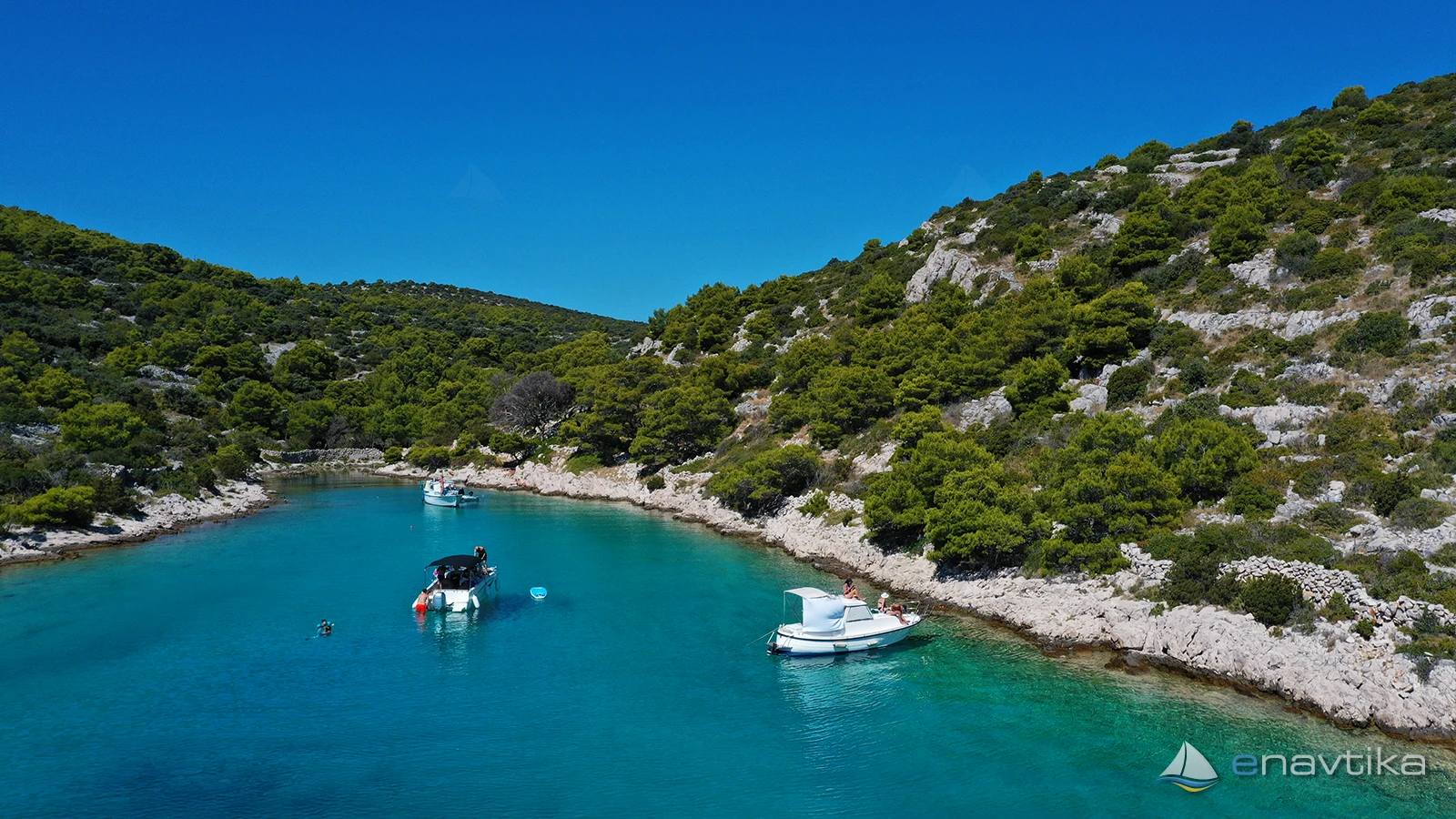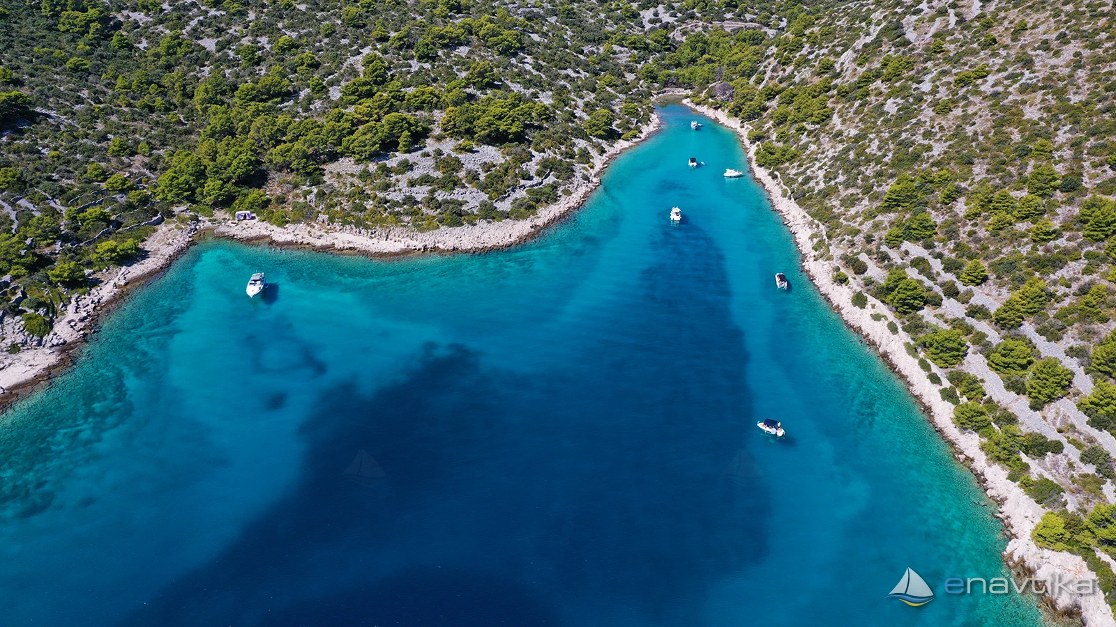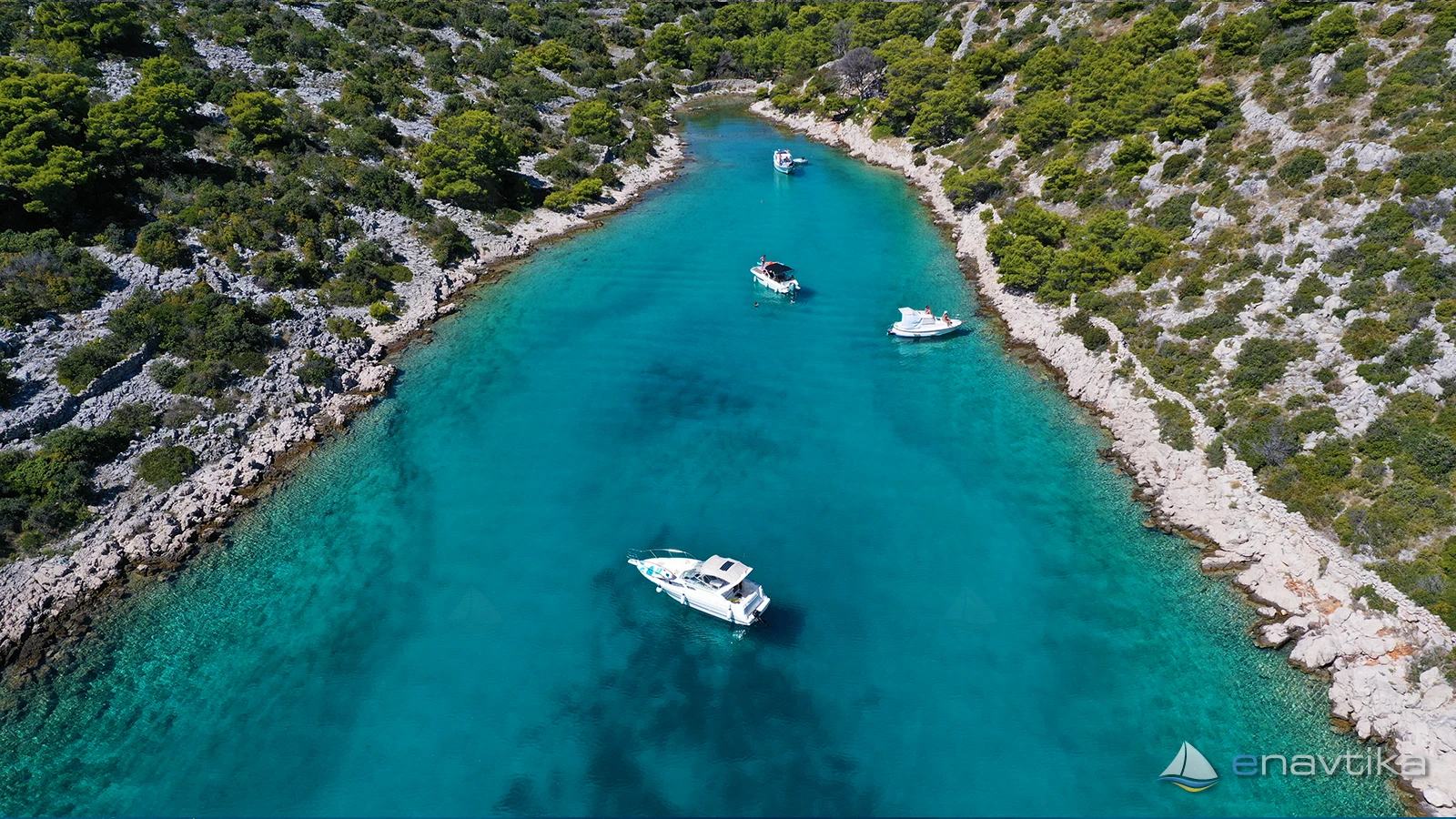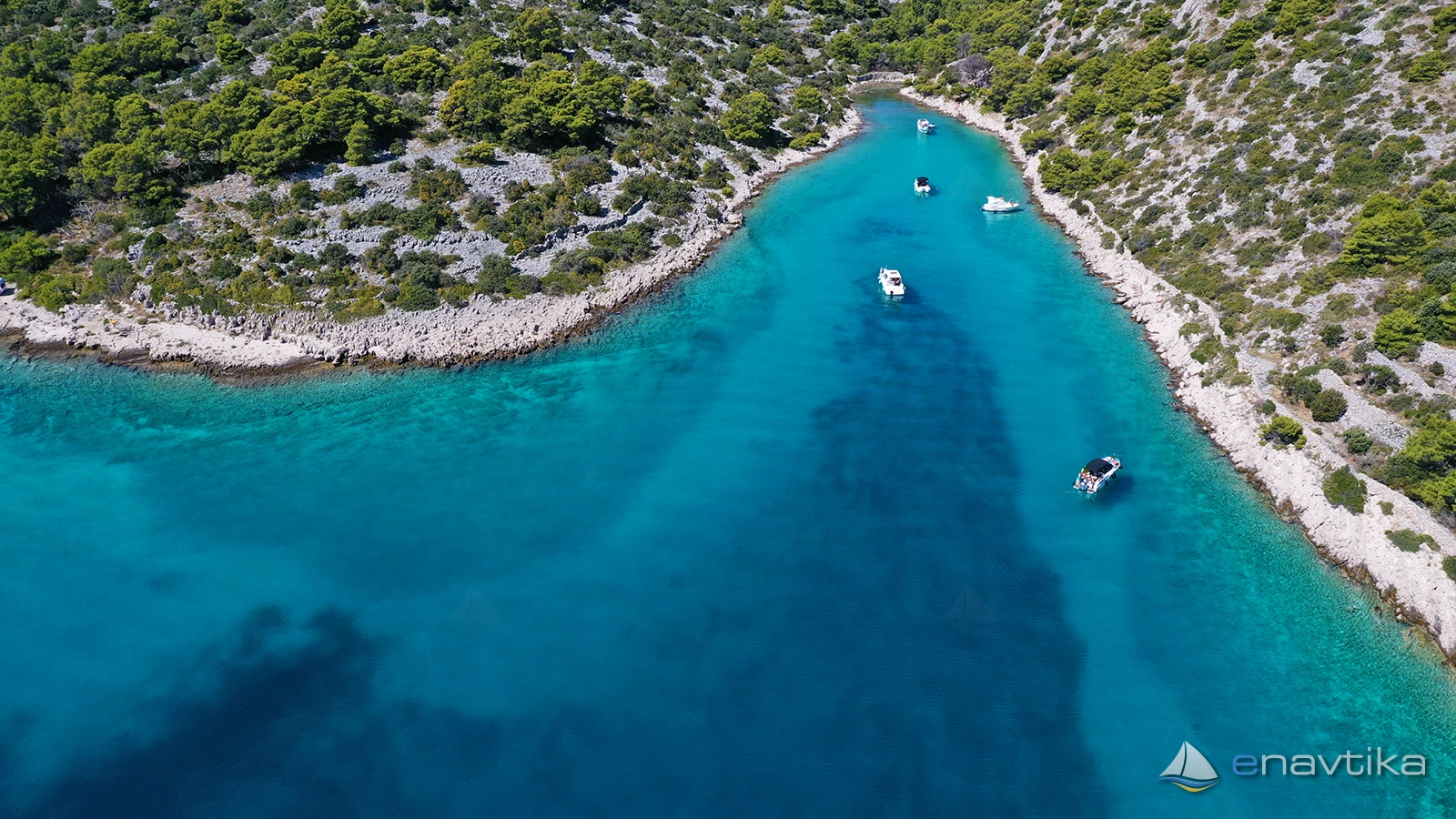 Anchorage Luka is on the eastern side of the island of Kaprije. It has two arms that are suitable for anchoring. The bay is well protected from the north and west winds. The bora and strong jugo in the bay cause waves. We can anchor at depths between 2 and 15 m. The bottom is sandy, rocky towards the shore. In the sandy part, the anchor holds well. There is no offer in the bay. The nearest tavern is in the bay of Gačice and Medoš. The nearest shop is in the port of Kaprije, and the nearest gas station is in the town of Vodice, which is 6 nmi away. No concession has been granted for the bay. Anchoring on your own anchor is free of charge.