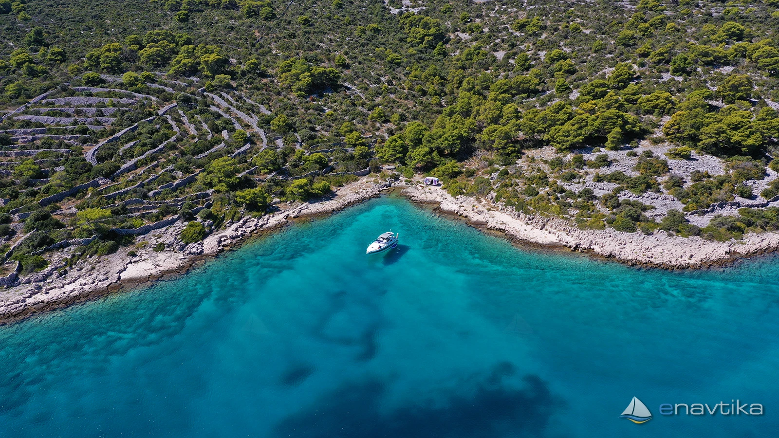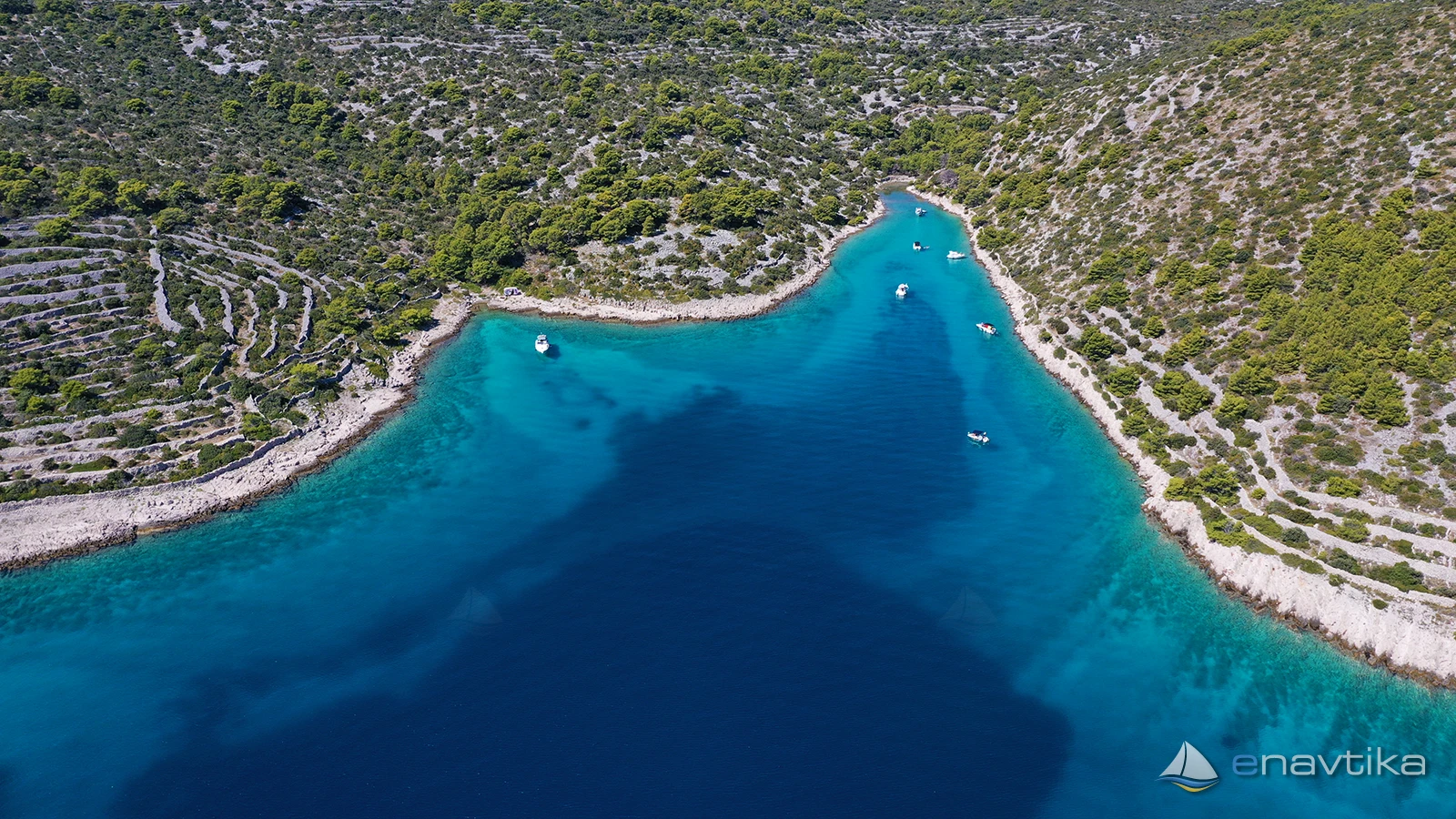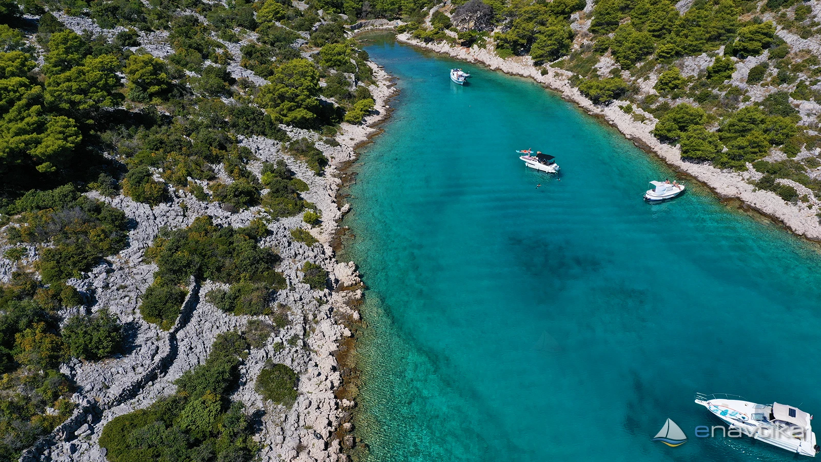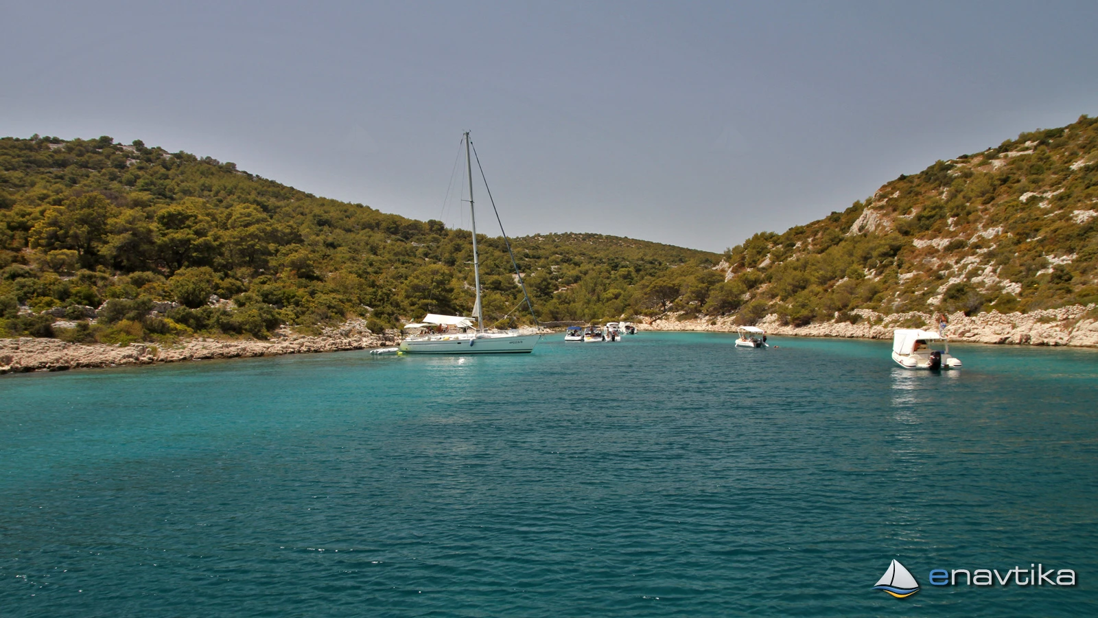 Anchorage Luka is on the eastern side of the island of Kaprije. It has two arms that are suitable for anchoring. The bay is well protected from the north and west winds. The bora and strong jugo in the bay cause waves. We can anchor at depths between 2 and 15 m. The bottom is sandy, rocky towards the shore. In the sandy part, the anchor holds well. There is no offer in the bay. The nearest tavern is in the bay of Gačice and Medoš. The nearest shop is in the port of Kaprije, and the nearest gas station is in the town of Vodice, which is 6 nmi away. No concession has been granted for the bay. Anchoring on your own anchor is free of charge.