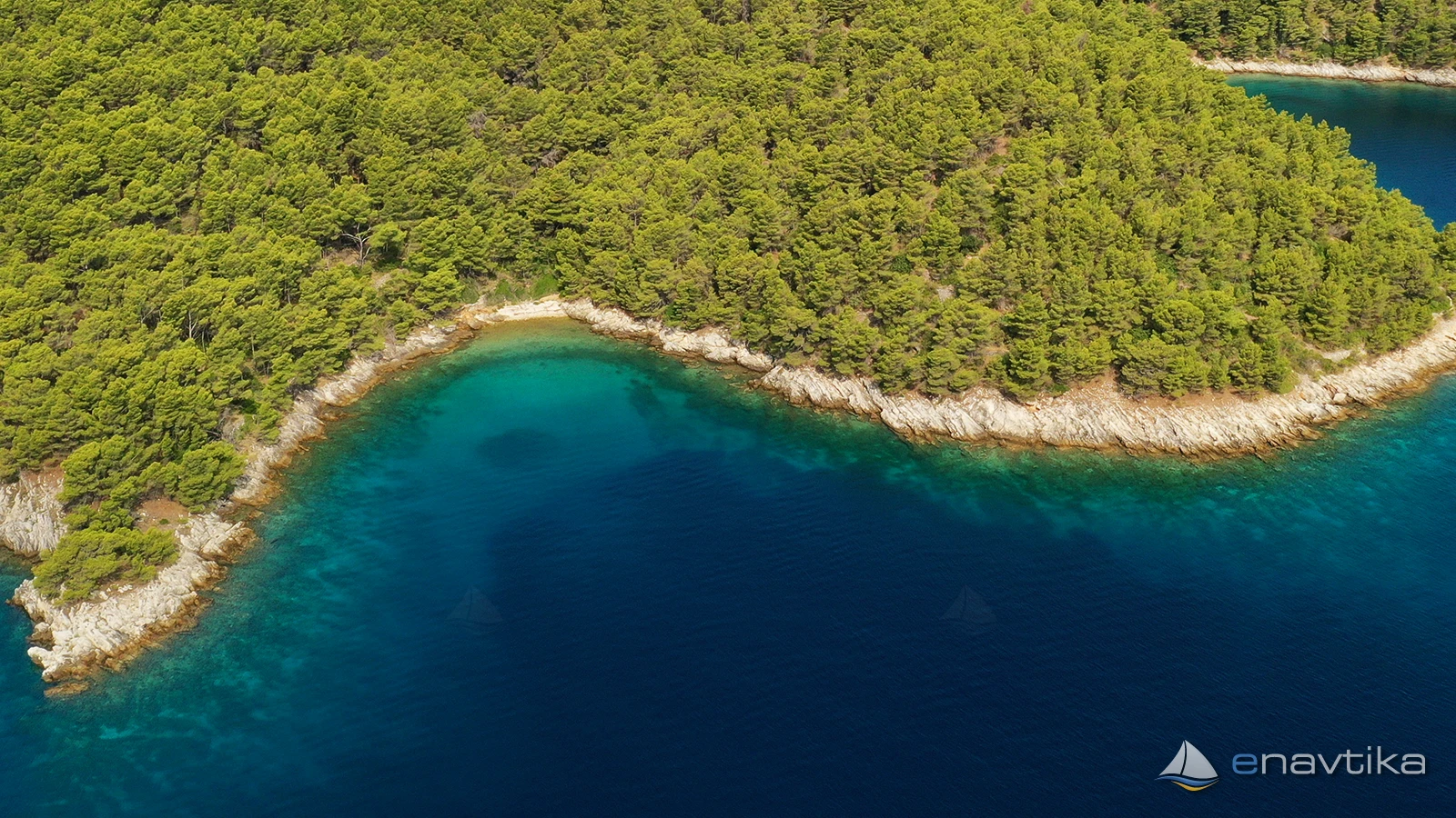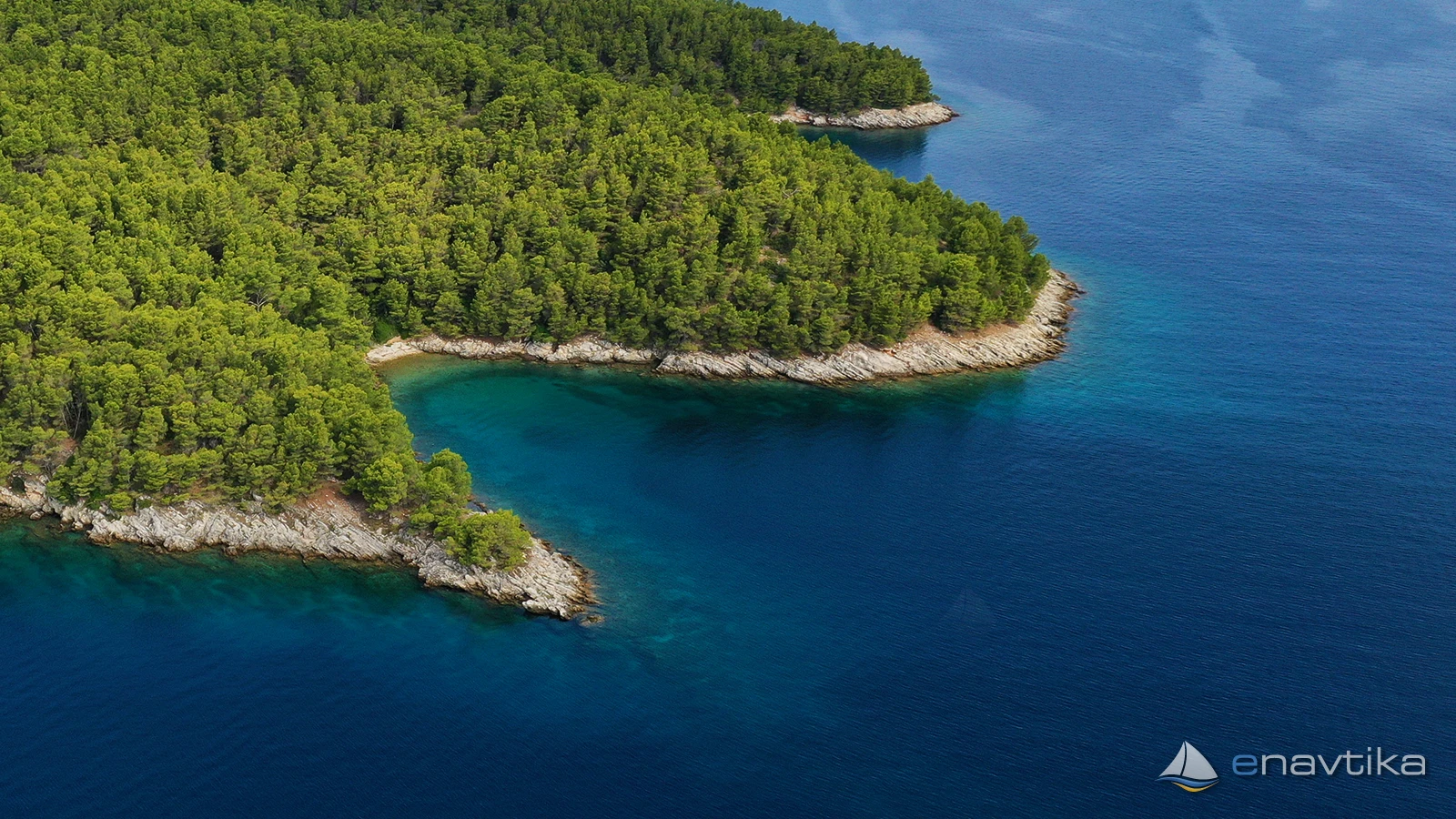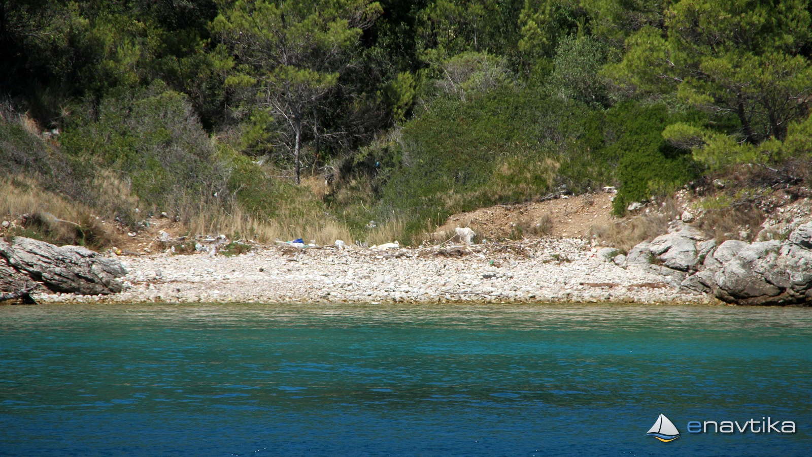 The anchorage Mala Lovišča is on the eastern side of the island of Zlarin. The bay is well protected from the westerly winds, the Burja and the Sirocco cause waves. We can anchor at depths between 2 and 15m. The bottom is sandy and the anchor holds well. The depths increase quickly. There is a small sandy beach in the bay. The nearest tavern is on the mainland in Brodarica or in the port of Zlarin on the northern side of the island. The nearest gas station is in the town of Šibenik or in front of the Vodice marina. Both are about 5 nmi by sea.