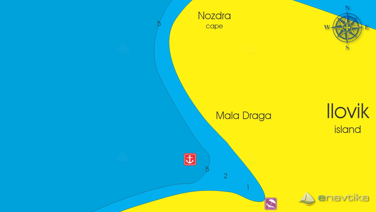 La baia di Mala Draga si trova sul lato nord-occidentale dell'isola di Ilovik. La baia è ben protetta dai venti da sud e da est. Altri venti possono causare onde. È possibile ancorare a profondità comprese tra 2 e 10 metri. Il fondale è sabbioso, roccioso verso la costa. Solo al centro della baia si trova una depressione sufficientemente profonda per l'ancoraggio, dove l'ancora tiene bene. Nella baia è presente una piccola spiaggia sabbiosa, collegata al paese da un sentiero. Non ci sono servizi nella baia. Il negozio e il ristorante più vicini si trovano a Ilovik, sul lato orientale dell'isola, a 1 miglio nautico di distanza. Il distributore di benzina più vicino si trova a Mali Lošinj, a 8 miglia nautiche di distanza. Non è stata concessa alcuna licenza per la baia. L'ancoraggio con la propria ancora è gratuito.