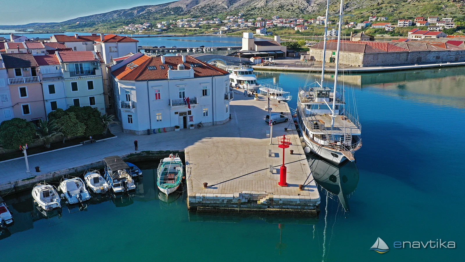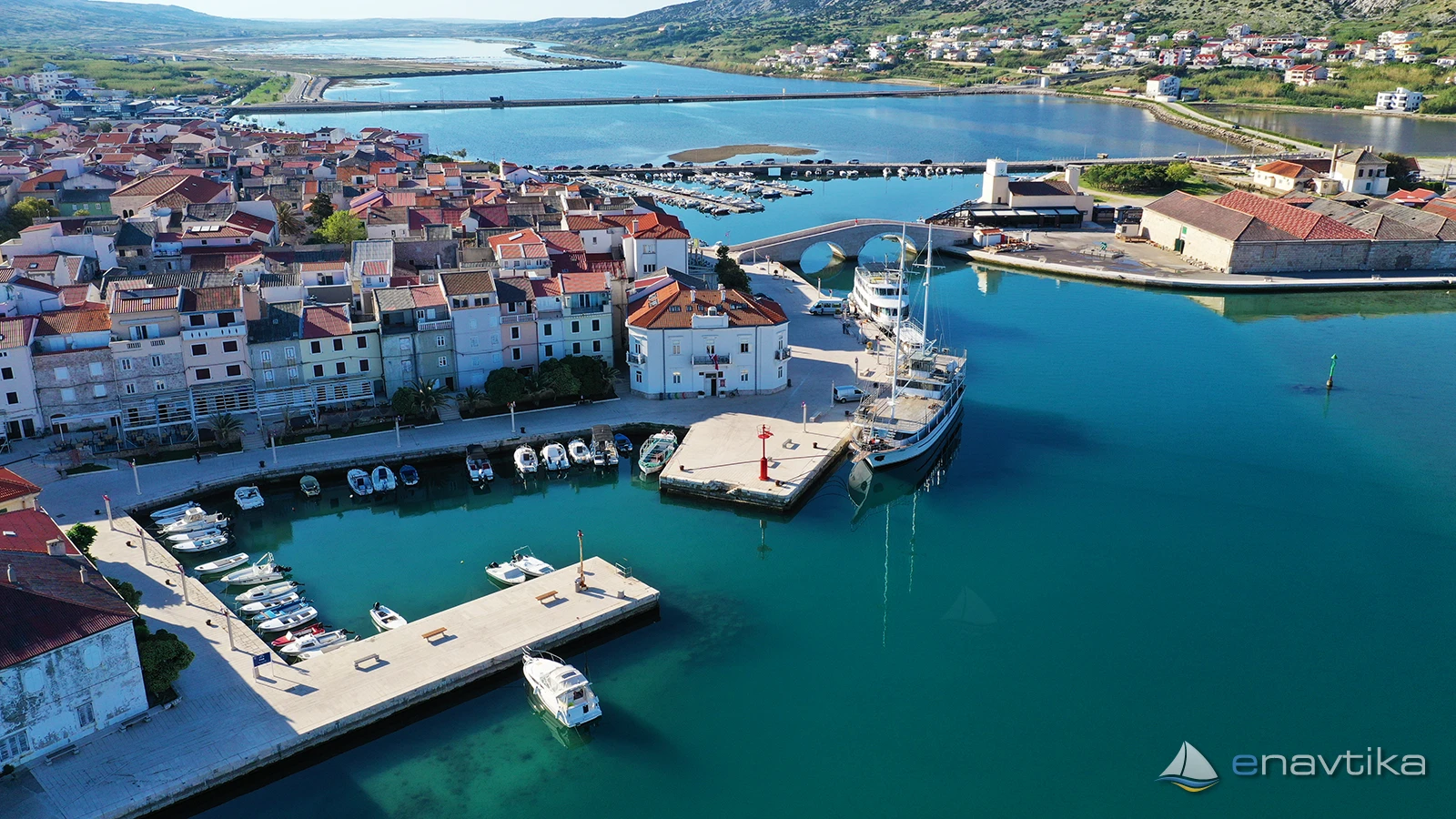 Luka Pag je na skrajnem jugovzhodnem delu Paškega zaliva. V luko vplujemo s skrajno vzhodne smeri med svetilnikom št. 308, ki stoji na glavi severnega valobrana luke ter svetilnikom 308.4, ki stoji na severnem delu plitvine. Globina morja zahodno od oznak je pod 2 m. V luki lahko pristanemo bočno ob obalo pred mostom ali pa se privežemo na enega izmed muringov, ki so nameščeni na zunanjem severnem delu paškega mandrača. Globina ob obali je le 1,5 m. Notranjost luke je rezervirana za plovila domačinov. V luki so številne gostilne, trgovine, luška kapitanija, drča za spuščanje plovil, dvigalo za spuščanje in dvigovanje plovil, ter druga ponudba mesta. V južnem delu je muzej solinarstva, južno od luke pa še znamenite paške soline. Najbližja bencinska črpalka je v mestu Rab, do koder je 22 nmi plovbe.