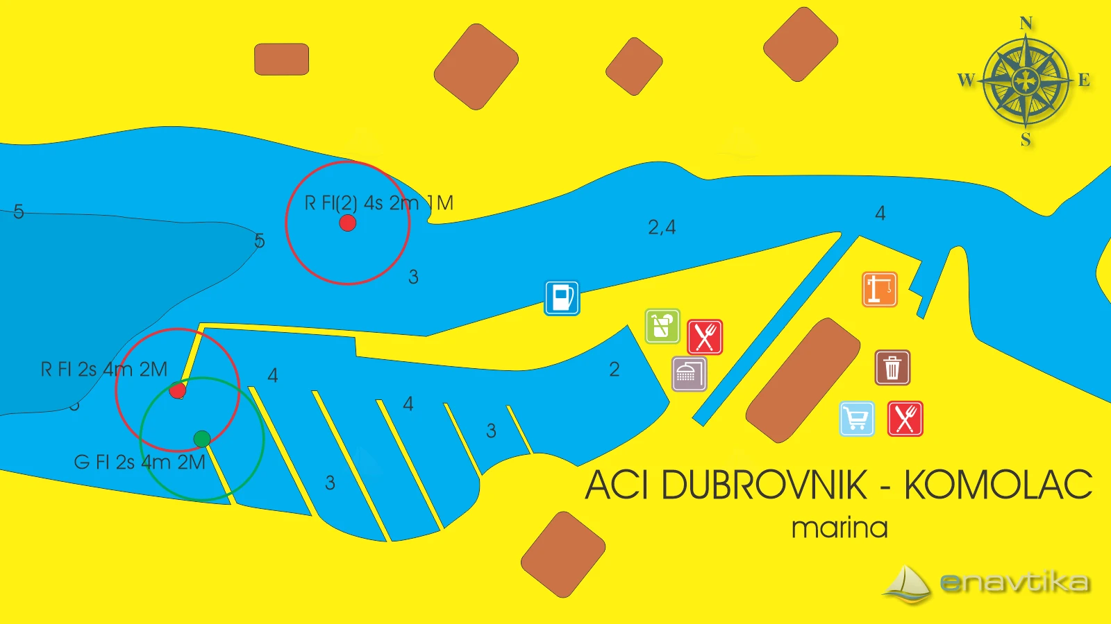 ACI marina Dubrovnik je v zalivu Rijeka Dubrovačka v kraju Komolac. Zaliv je dolg 2 km in širok med 170 m in 40 m. Dobro je zaščiten pred vsemi vetrovi, razen pred zahodnimi. V marino vplujemo iz zahodne smeri med rdečim in zelenim svetilnikom. Severno od vhoda v marino je še en rdeč svetilnik, ki opozarja na plitvino v severnem delu rečne struge. Če želimo pluti do bencinske črpalke, ki je v severnem delu marine, moramo pluti med obema rdečima svetilnikoma, držati pa se moramo južnega dela kanala, kjer so globine več kot 2,5 m. Severni del kanala je plitvejši. Globine so med 2 in 2,5 m. V marini so toaletni prostori, trgovina, plavalni bazen, pralnica, bencinska črpalka, restavracija, navtična trgovina, golf, polnilnica za električna vozila in servis. V marini je tudi dvigalo za dvig plovil iz morja.