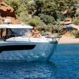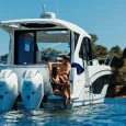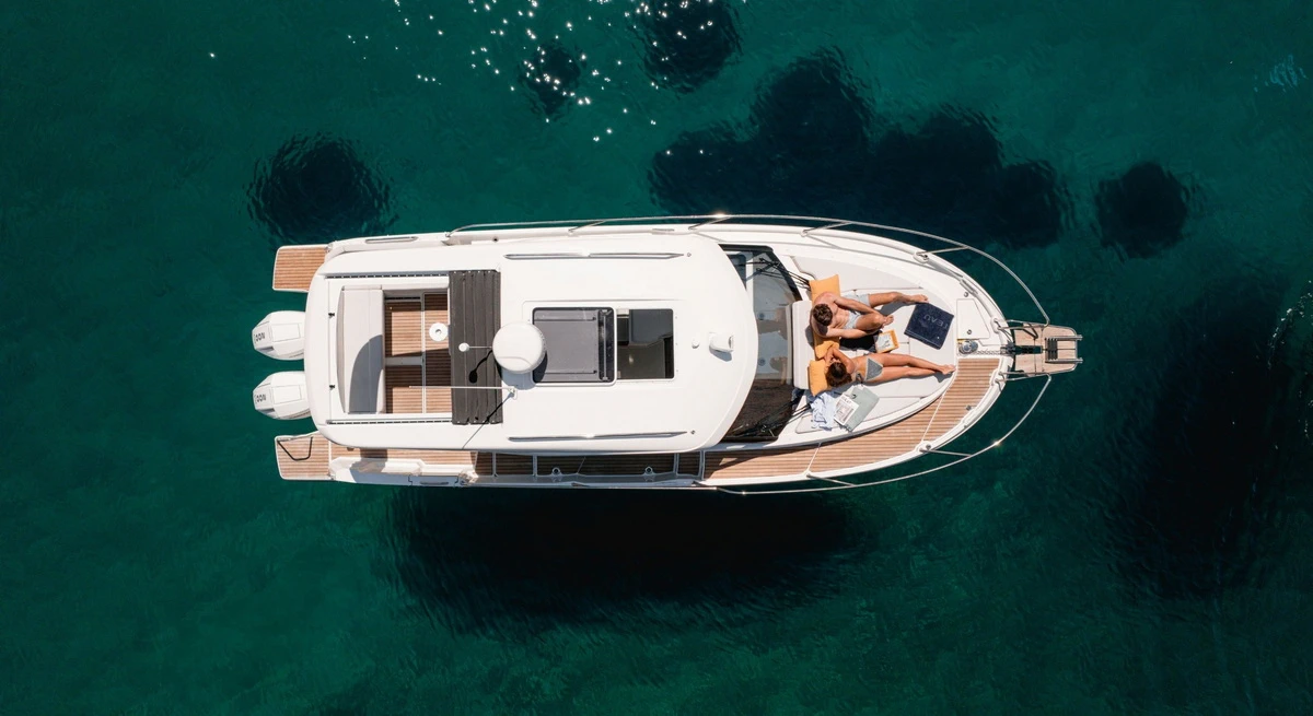 Stranska dostopna vrata omogočajo lažje vkrcanje in izkrcanje, medtem ko kopalna lestev nudi priročen dostop do vode. Širši in globlji prehod na desnem boku z visokimi ograjami zagotavlja varen dostop do premca – za odpiranje sidrnega predala, dostopa do pomola ali sprostitev na soncu na izjemno udobnih blazinah za sončenje z nastavljivimi naslonjali. Vsaka inovacija je zasnovana z namenom olajšanja gibanja in brezhibnega dostopa do morja, da bodo vaši izleti udobnejši, sproščeni in še prijetnejši.