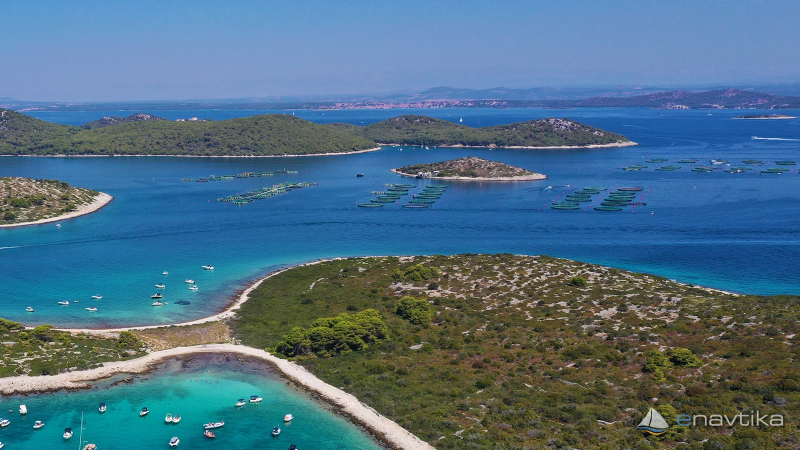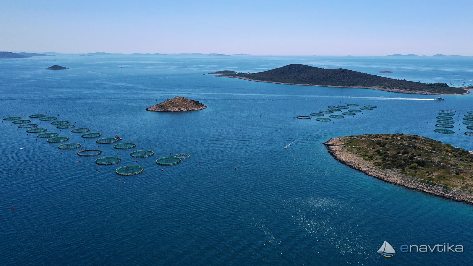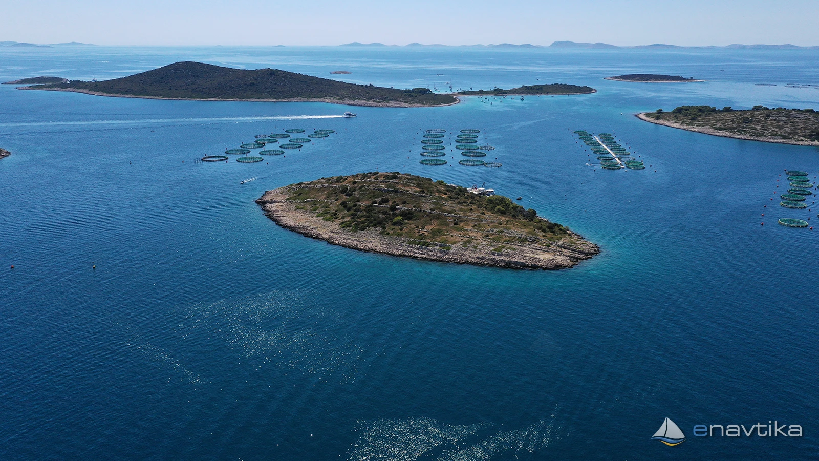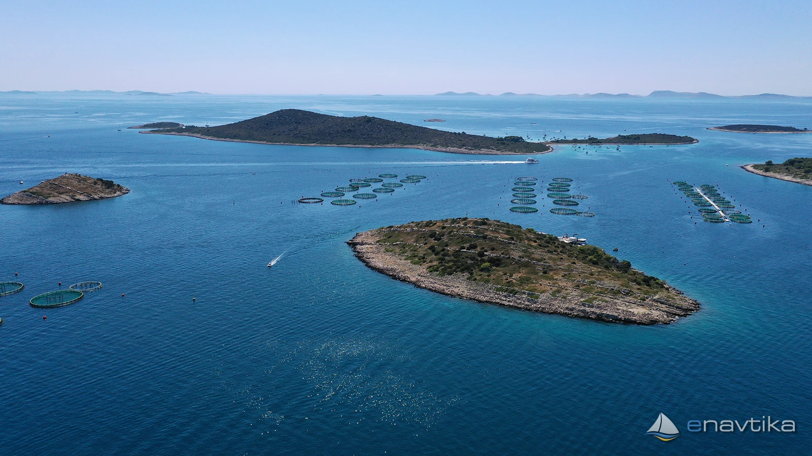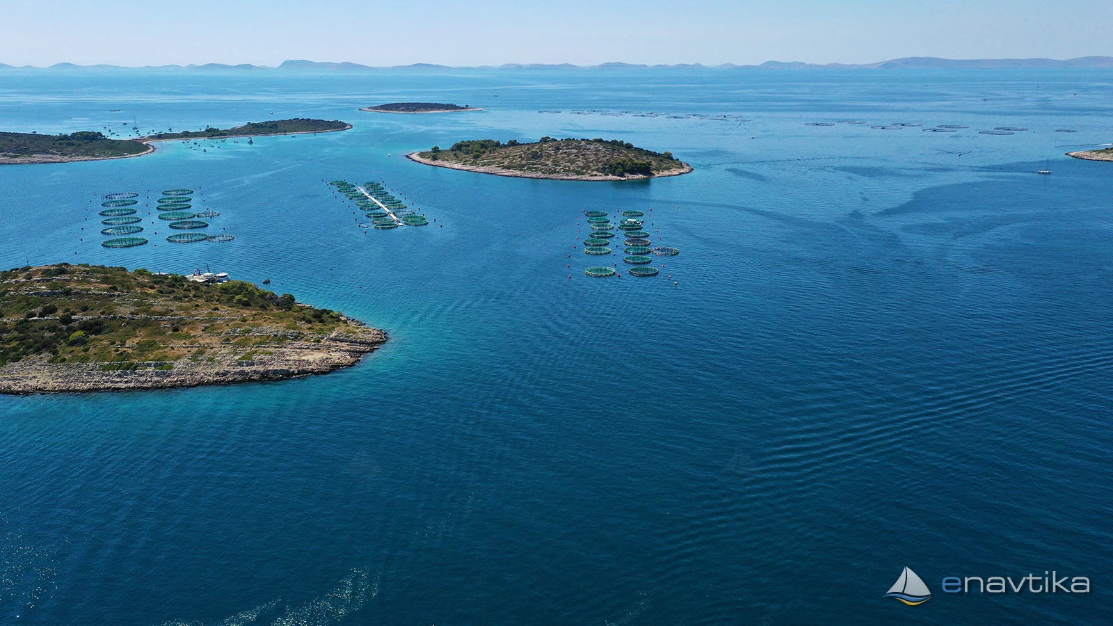 Ribogojnica se razteza med otoki Oblik, Veli Školjič, Mali Školjič, Murvenjak in Giram. Sidranje je prepovedano na razdalji 150 m od ribogojnice. Pri plovbi v akvatoriju moramo biti zelo previdni, še posebej ponoči.
