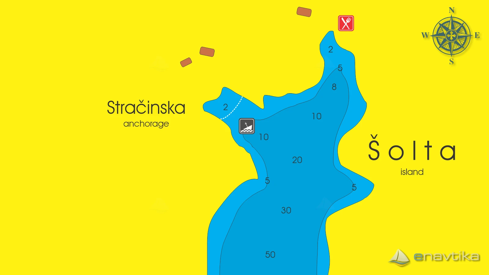 Sidrišče Stračinska je na jugovzhodni strani otoka Šolta. Zaliv je dobro zaščiten pred vsemi vetrovi, razen pred južnimi. Plaža je zaščitena s plavajočo ograjo. Vplutje je možno le s pomožnim plovilom. Sidramo lahko na primerni razdalji od plavajoče ograje. Globine morja hitro naraščajo. Dno je peščeno in v delih poraslo z morsko travo. V sredini zaliva je potopljena pasara. Pri spuščanju sidra moramo biti previdni, da ga ne spustimo v pasaro ali v njeno bližino, ker se lahko zgodi, da nam sidra ne bo uspelo izvleči. Najbližja gostilna je v zalivu Sajtija, v neposredni bližini. Najbližja trgovina in bencinska črpalka sta v Milni na otoku Braču, do koder je 4 nmi plovbe. Za zaliv ni podeljena koncesija. Sidranja na lastnem sidru in prenočevanja ni treba plačevati.