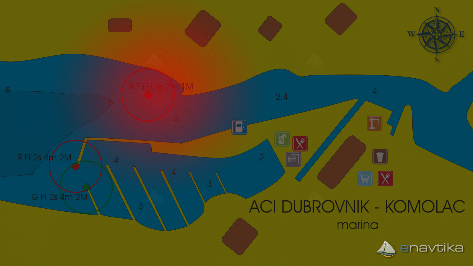 Svetilnik št. 429 stoji severno od marine ACI Dubrovnik v kanalu reke Omble. Označuje varno plovno pot proti izviru reke. Oznaka stoji na globini 2 m, severno od oznake globina pade pod 0,5 m. Pri plovbi po severni strani marine moramo svetilnik pustiti na svoji levi. Rdeč železen steber je visok 2 m. Luč je na višini 2 m nad morsko gladino. Vsake 4 s oddaja dva zaporedna bliska rdeče svetlobe. Karakteristika oznake je R Bl(2) 4s 2m 1M.