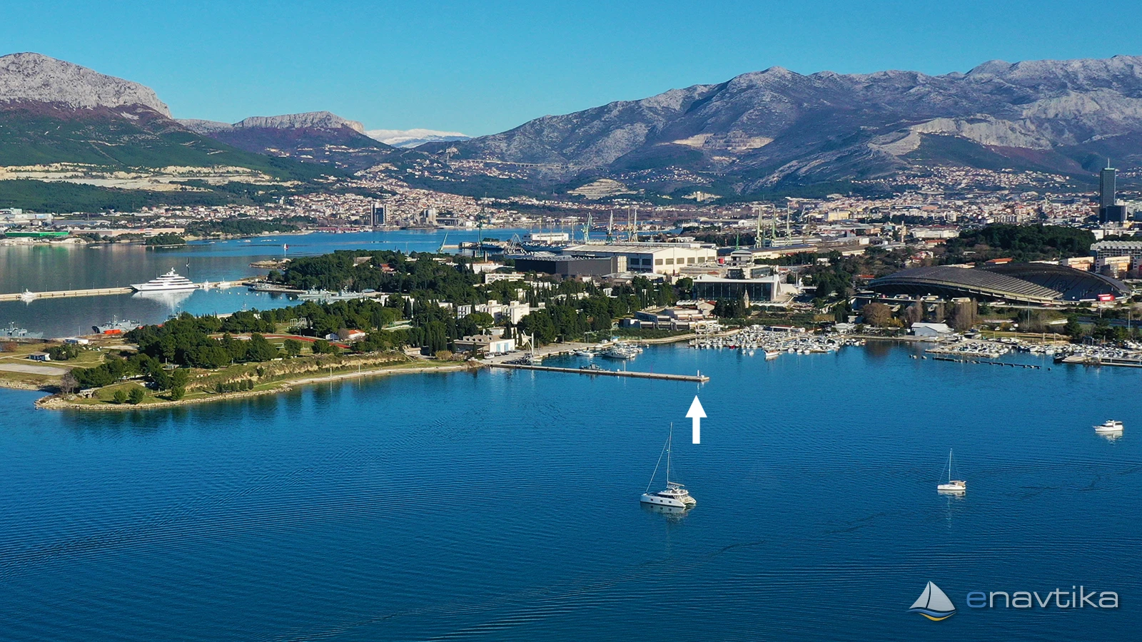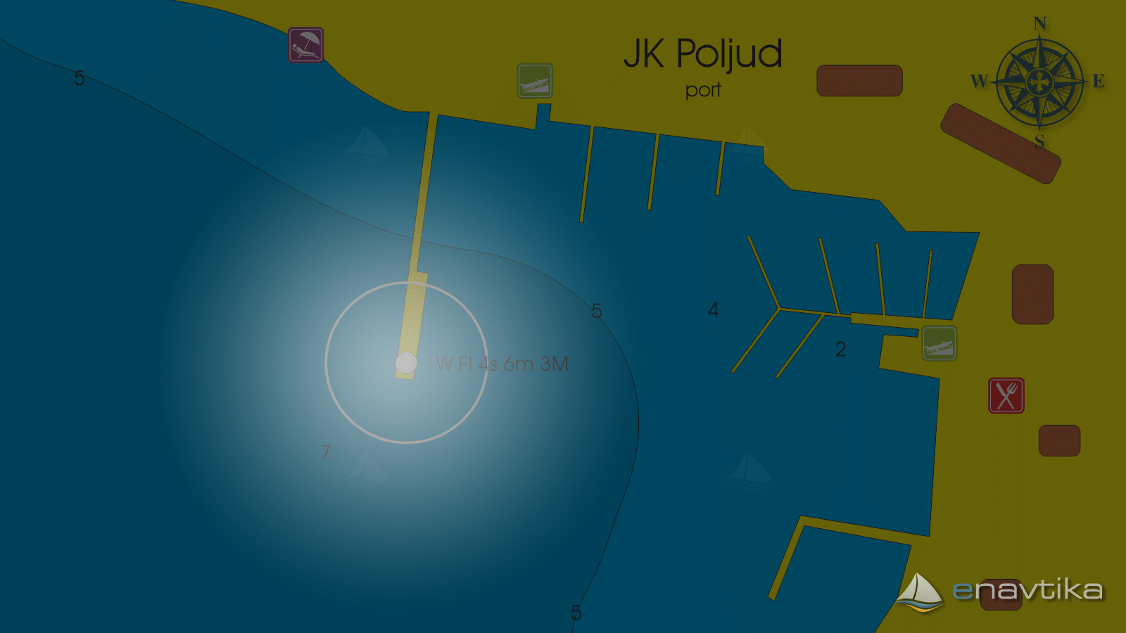 Svetilnik št. 588 stoji na glavi pomola luke Poljud. Bela železna konstrukcija je visoka 5 m. Luč svetilnika je na višini 6 m. Vsake 4 s oddaja blisk bele svetlobe, ki je vidna z razdalje 3 nmi. Karakteristika luči je B Bl 4s 6m 3M.