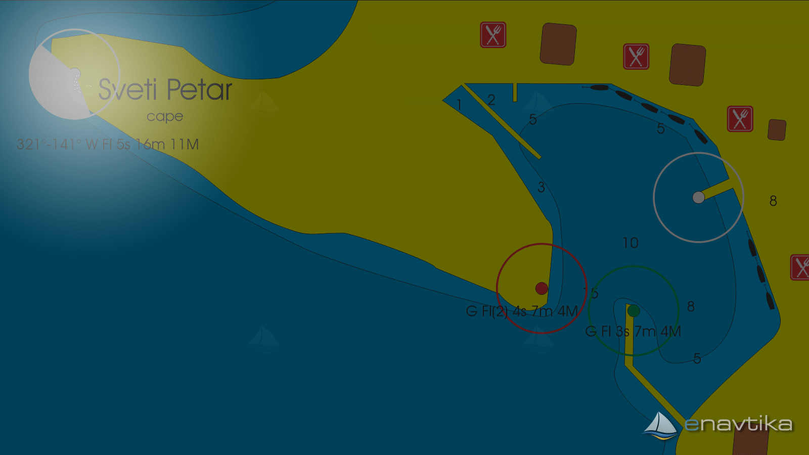 Svetilnik št 612.na polotoku Sveti Petar je bil zgrajen leta 1884. Kamnita hiša ima v sredini stolp na katerem je luč svetilnika. Je na višini 16 m nad morsko gladino in oddaja bel blisk vsakih 5 s. Svetloba je vidna z razdalje 11 nmi. Karakteristika svetilnika je: B Bl 5s 16m 11M.
